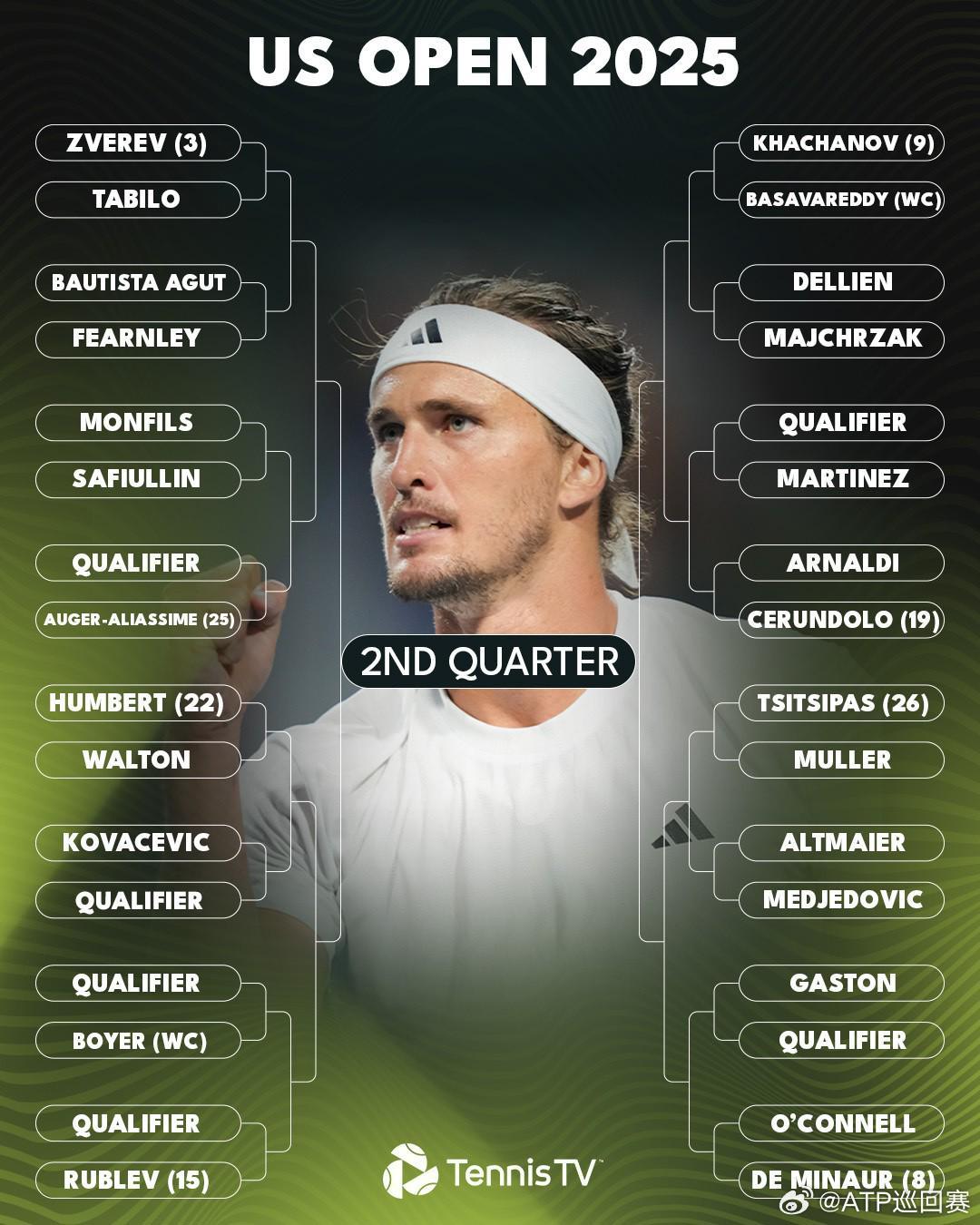 男单方面,1号种子辛纳和2号种子阿尔卡拉斯首轮将分别面对科普利瓦和奥佩尔卡,德约作为7号种子出战,首轮面对本土新星勒纳-钱。
