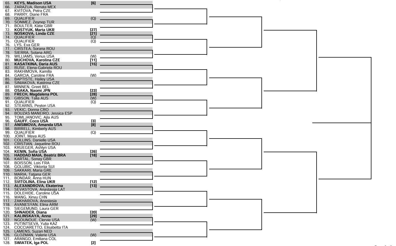 女单首轮当中,王欣瑜的对手是多勒海德,袁悦将遭遇17号种子萨姆索诺娃。依靠保护排名参赛的朱琳和王雅繁,在首轮的对手分别是波塔波娃、10号种子纳瓦罗。